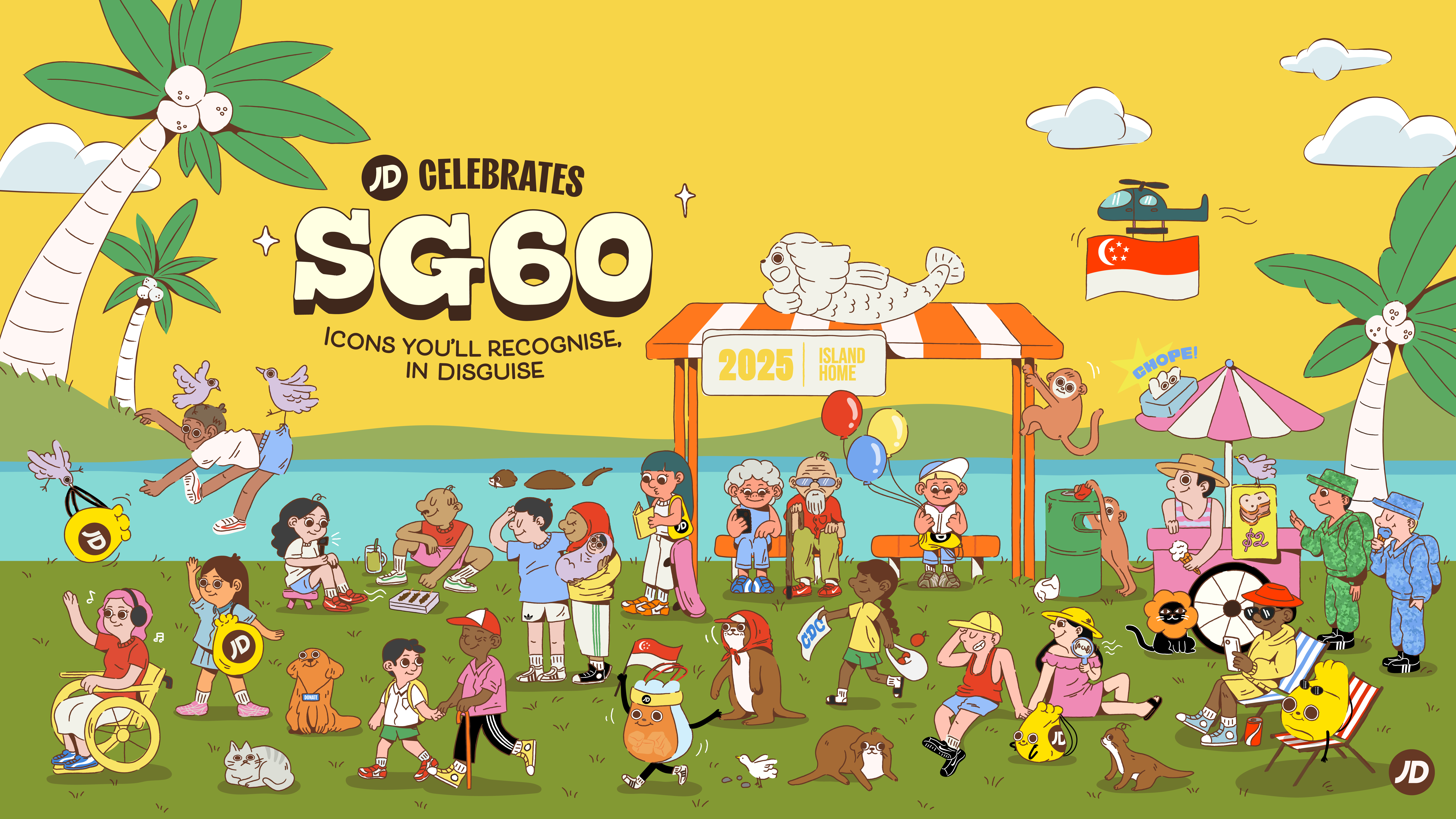 Celebrating SG60, JD Sports teamed up with Jaeyyelle to create character illustrations on our sunny island, living in familiar subtlety.